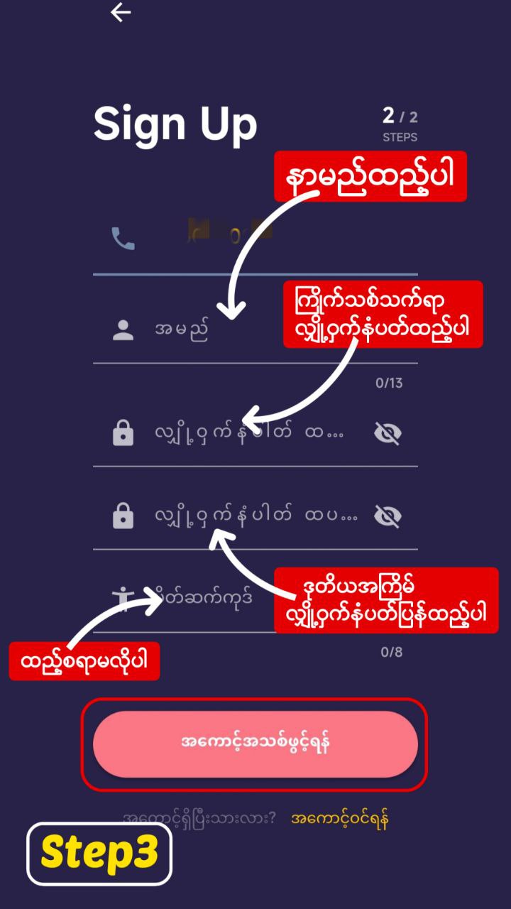 အကောင့်ဖွင့်နည်း လမ်းညွှန်